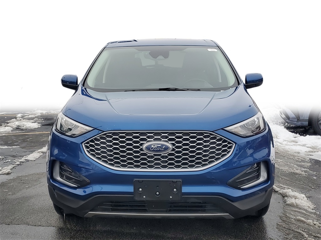 This Edge is well equipped with Equipment Group 201A, Ford Co-Pilot360 Assist+ (Evasive Steering Assist and Leather-Wrapped Steering Wheel), AWD, 3.80 Axle Ratio, 4-Wheel Disc Brakes, 6 Speakers, ABS brakes, ActiveX Trimmed Heated Bucket Seats, Air Conditioning, Alloy wheels, AM/FM radio: SiriusXM with 360L, AM/FM Stereo, Auto High-beam Headlights, Auto-dimming Rear-View mirror, Automatic temperature control, Brake assist, Bumpers: body-color, Compass, Delay-off headlights, Driver door bin, Driver vanity mirror, Dual front impact airbags, Dual front side impact airbags, Electronic Stability Control, Emergency communication system: SYNC 4 911 Assist, FordPass Connect, Four wheel independent suspension, Front anti-roll bar, Front Bucket Seats, Front Center Armrest w/Storage, Front dual zone A/C, Front License Plate Bracket, Front reading lights, Fully automatic headlights, Heated door mirrors, Heated front seats, Illuminated entry, Knee airbag, Leather steering wheel, Low tire pressure warning, Occupant sensing airbag, Outside temperature display, Overhead airbag, Overhead console, Panic alarm, Passenger door bin, Passenger vanity mirror, Power door mirrors, Power driver seat, Power passenger seat, Power steering, Power windows, Rear anti-roll bar, Rear Parking Sensors, Rear reading lights, Rear seat center armrest, Rear window defroster, Rear window wiper, Remote keyless entry, SiriusXM w/360L, Speed control, Speed-Sensitive Wipers, Split folding rear seat, Spoiler, Steering wheel mounted audio controls, SYNC 4A w/Enhanced Voice Recognition, Tachometer, Telescoping steering wheel, Tilt steering wheel, Traction control, Trip computer, Variably intermittent wipers, and Wheels: 18" Sparkle Silver-Painted Aluminum.