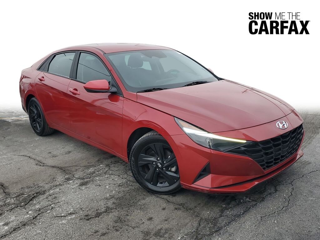 This Elantra is well equipped with Cargo Package (Cargo Block, Cargo Net, and Reversible Cargo Tray), Option Group 01, Elantra SEL, 4D Sedan, I4, CVT, FWD, Scarlet Red Pearl, Black Cloth, 16" x 6.5J Alloy Wheels, 4-Wheel Disc Brakes, 6 Speakers, ABS brakes, Air Conditioning, Alloy wheels, AM/FM radio: SiriusXM, Apple CarPlay & Android Auto, Auto High-beam Headlights, Automatic temperature control, Brake assist, Bumpers: body-color, Carpeted Floor Mats, Cloth Seat Trim, Delay-off headlights, Driver door bin, Driver vanity mirror, Dual front impact airbags, Dual front side impact airbags, Electronic Stability Control, Emergency communication system: Blue Link Connected Car Service (3-year complimentary subscription), Exterior Parking Camera Rear, First Aid Kit, Front anti-roll bar, Front Bucket Seats, Front Center Armrest, Front dual zone A/C, Front reading lights, Front wheel independent suspension, Fully automatic headlights, Illuminated entry, Low tire pressure warning, Occupant sensing airbag, Outside temperature display, Overhead airbag, Overhead console, Panic alarm, Passenger door bin, Passenger vanity mirror, Power door mirrors, Power steering, Power windows, Radio: AM/FM/HD/SiriusXM Display Audio, Rear window defroster, Remote keyless entry, Security system, Speed control, Speed-sensing steering, Steering wheel mounted audio controls, Tachometer, Telescoping steering wheel, Tilt steering wheel, Traction control, Trip computer, and Variably intermittent wipers.