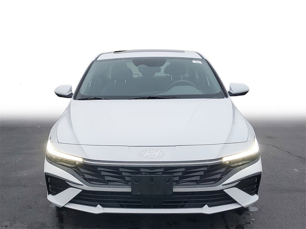 This Elantra is well equipped with Option Group 01, Elantra SEL Convenience, 4D Sedan, I4, CVT, FWD, Serenity White, Gray w/Premium Cloth Seat Trim, Navigation System, 17" x 7.0J Alloy Wheels, 4-Wheel Disc Brakes, 6 Speakers, ABS brakes, Air Conditioning, Alloy wheels, AM/FM radio: SiriusXM, Apple CarPlay & Android Auto, Auto High-beam Headlights, Automatic temperature control, Brake assist, Bumpers: body-color, Delay-off headlights, Driver door bin, Driver vanity mirror, Dual front impact airbags, Dual front side impact airbags, Electronic Stability Control, Emergency communication system: Bluelink+, Exterior Parking Camera Rear, Front anti-roll bar, Front Bucket Seats, Front Center Armrest, Front dual zone A/C, Front reading lights, Front wheel independent suspension, Fully automatic headlights, Heated door mirrors, Heated Front Bucket Seats, Heated front seats, Illuminated entry, Leather Shift Knob, Leather steering wheel, Low tire pressure warning, Occupant sensing airbag, Outside temperature display, Overhead airbag, Overhead console, Panic alarm, Passenger door bin, Passenger vanity mirror, Power door mirrors, Power moonroof, Power steering, Power windows, Premium Cloth Seat Trim, Radio: AM/FM/HD/SiriusXM Display Audio, Rear seat center armrest, Rear side impact airbag, Rear window defroster, Remote keyless entry, Security system, Speed control, Speed-sensing steering, Split folding rear seat, Steering wheel mounted audio controls, Tachometer, Telescoping steering wheel, Tilt steering wheel, Traction control, Trip computer, and Variably intermittent wipers.