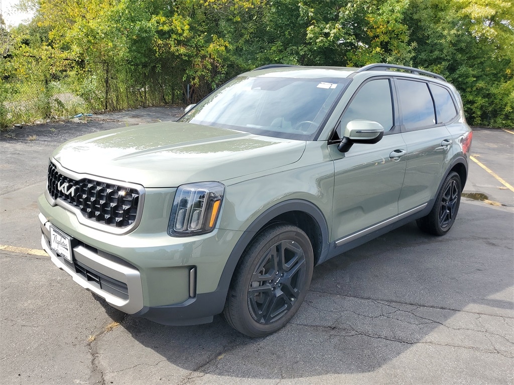 This Telluride is well equipped with 3.648 Axle Ratio, 3rd row seats: split-bench, 4-Wheel Disc Brakes, 6 Speakers, ABS brakes, Air Conditioning, Alloy wheels, AM/FM radio: SiriusXM, Apple CarPlay & Android Auto, Auto High-beam Headlights, Auto-dimming Rear-View mirror, Auto-leveling suspension, Automatic temperature control, Brake assist, Bumpers: body-color, Carpet Floor Mats, Compass, Delay-off headlights, Driver door bin, Driver vanity mirror, Dual front impact airbags, Dual front side impact airbags, Electronic Stability Control, Emergency communication system: 911 Connect, Exterior Parking Camera Rear, Four wheel independent suspension, Front anti-roll bar, Front Bucket Seats, Front Center Armrest, Front dual zone A/C, Front reading lights, Fully automatic headlights, Heated & Ventilated Front Bucket Seats, Heated door mirrors, Heated front seats, Heated steering wheel, Illuminated entry, Knee airbag, Leather Seat Trim, Leather Shift Knob, Leather steering wheel, Low tire pressure warning, Navigation System, Occupant sensing airbag, Outside temperature display, Overhead airbag, Overhead console, Panic alarm, Passenger door bin, Passenger vanity mirror, Power door mirrors, Power driver seat, Power Liftgate, Power moonroof, Power passenger seat, Power steering, Power windows, Radio data system, Radio: AM/FM Display Audio System, Rear air conditioning, Rear anti-roll bar, Rear audio controls, Rear reading lights, Rear side impact airbag, Rear window defroster, Rear window wiper, Reclining 3rd row seat, Remote keyless entry, Roof rack: rails only, Security system, Smart Key w/ Push Button and Remote Start, Speed control, Speed-sensing steering, Split folding rear seat, Spoiler, Steering wheel mounted audio controls, Tachometer, Telescoping steering wheel, Tilt steering wheel, Traction control, Trip computer, Turn signal indicator mirrors, Variably intermittent wipers, Ventilated front seats, and Wheels: 20" x 7.5" Black Finish X-LINE Exclusive.
